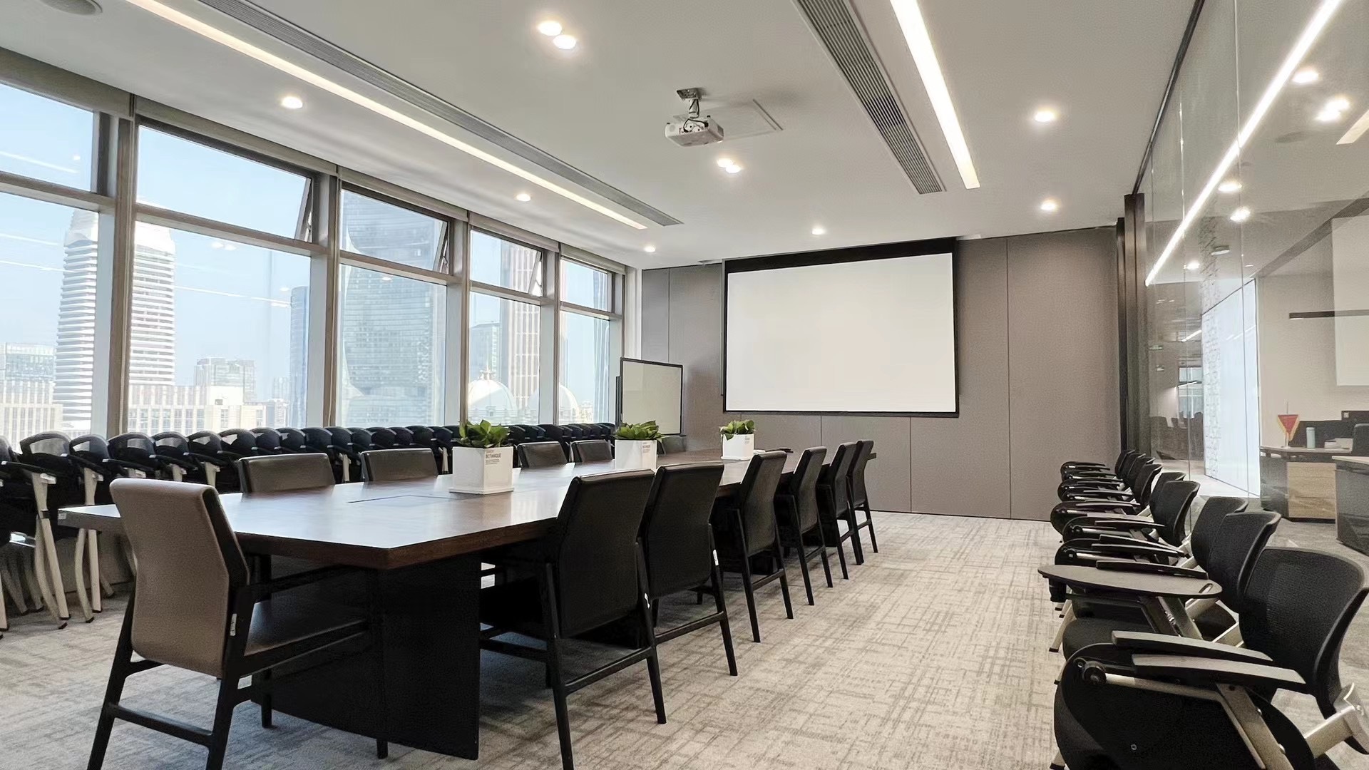 In this reference, our product is applied to the entrance, reception area and conference room. When light reflects on the metallic panel, the small entrance is made to look more spacious and grandeur.
